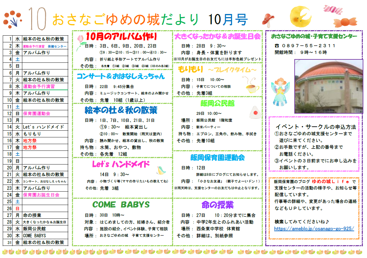 おさなごゆめの城(飯岡保育園内)のお知らせ・イベント