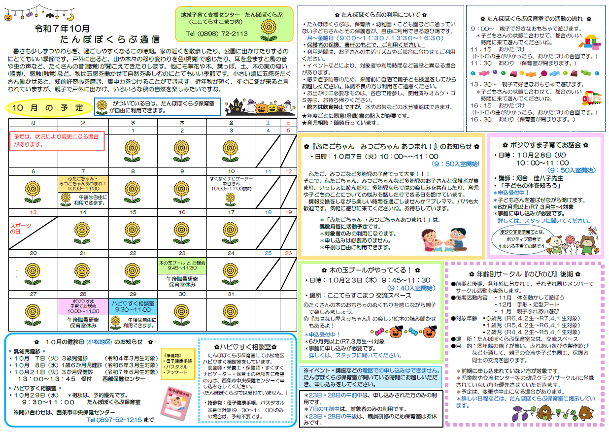 たんぽぽくらぶ(ここてらす こまつ内)のお知らせ・イベント