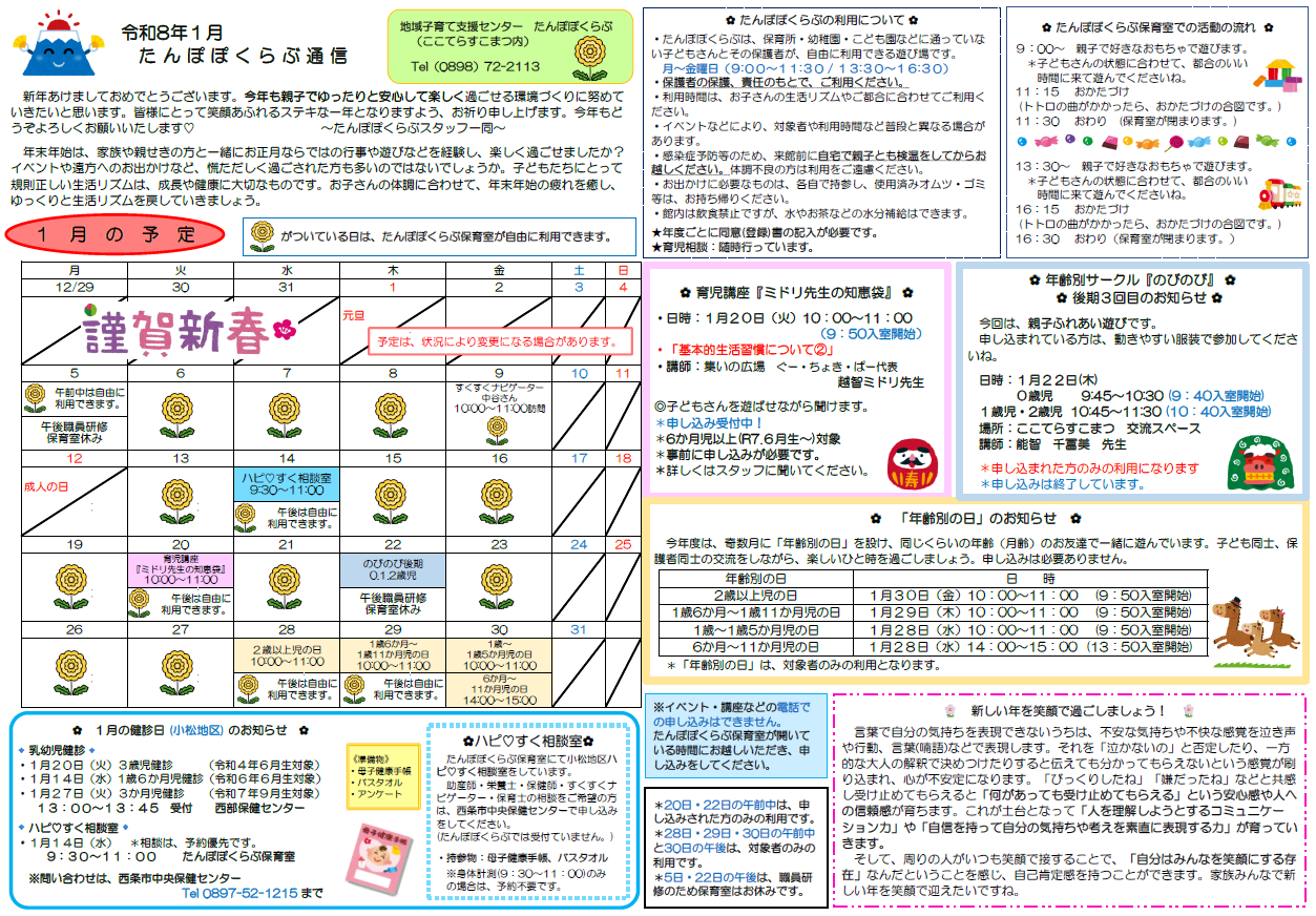 たんぽぽくらぶ通信1月号