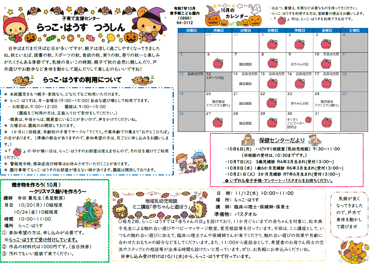 らっこ・はうす(東予南こども園内)のお知らせ・イベント