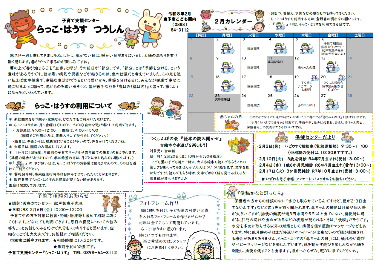 らっこ・はうす(東予南こども園内)のお知らせ・イベント